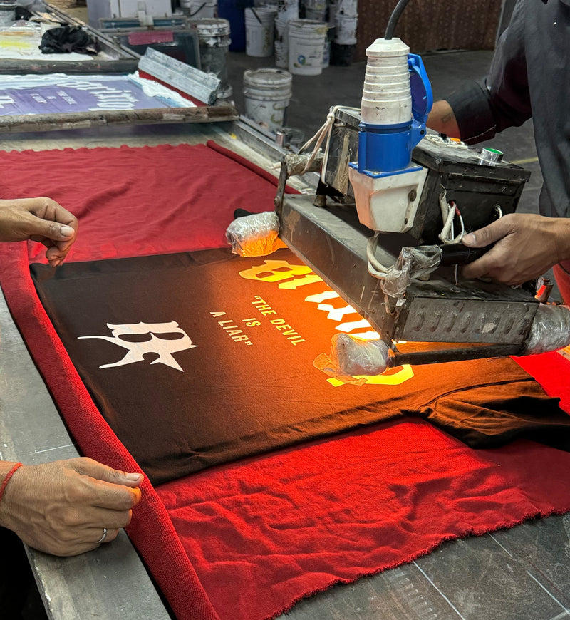 And we don’t make it for everyone. Every Back & Forth t-shirt is made inside our studio — touched by heat, blade, ink, and flame. No factories. No shortcuts. Just hands. We screen print, cut, distress, burn, and stitch each piece one by one, knowing exactly when to stop. No two are the same.
